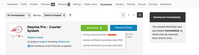Log in to your Codecanyon account and download the Deprixa Pro file.